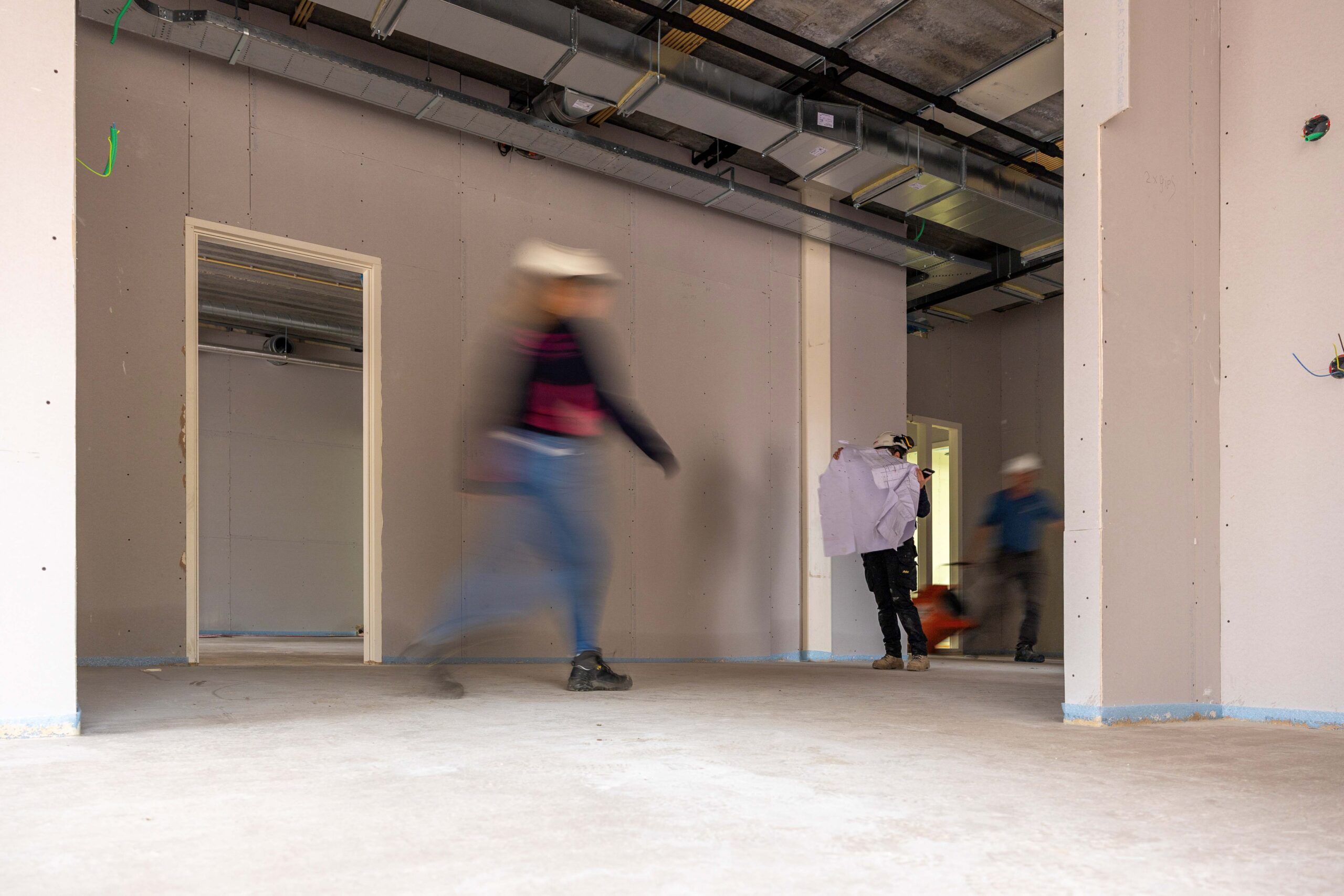 Op de bouwplaats bij KC Amstenrade is de afgelopen weken veel gebeurd: de staalconstructie van de begane grond is geplaatst, de wanden zijn aangebracht én de druklaag op de verdieping is gestort. Nu gaan onze collega’s en BINX-makers genieten van een welverdiende zomervakantie. Daarna is het tijd om de verdieping verder op te bouwen en bereiken we snel het hoogste punt van de bouw!