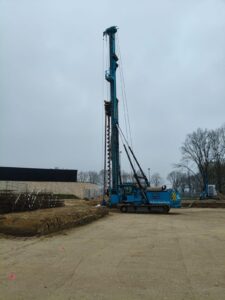 Deze week zijn de palen voor de nieuwbouw van het Kindcentrum in Amstenrade geboord. Dinsdagochtend om 7 uur werd de eerste paal van 9,5 meter de grond in geslagen, en woensdag rond het middaguur waren alle 117 palen geboord. Na een periode van uitharden kunnen we straks volop verder met de rest van het gebouw!