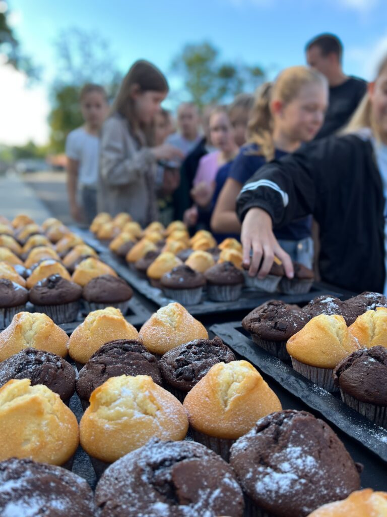 Volgens traditie is ‘de mei’ geplaatst, waren er muffins voor de kinderen en voor de andere bezoekers koffie met vlaai. Al met al een mooie mijlpaal.